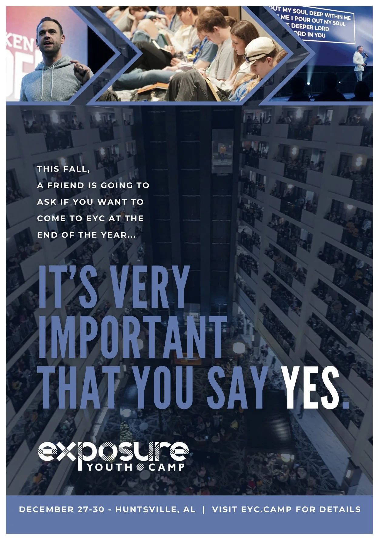 Exposure Youth Camp occurs every year in Huntsville, AL on December 27-30. This year, we will be pursuing absolute truth. Join us as we write the next page of our Ministry Journey in Sharing the Gospel!